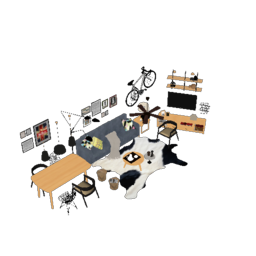 客厅餐厅组合SU模型 (3)