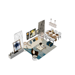 客厅餐厅组合SU模型 (9)
