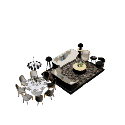 客厅餐厅组合SU模型 (10)