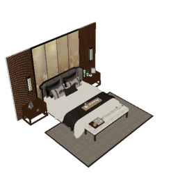 23新中式卧室实木双人床床头柜床尾凳茶具组合sketchup草图模型下载