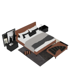 25现代双人床,床头柜,台灯,床尾凳,包包,装饰挂画,花瓶摆件,床品
