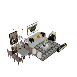 客厅餐厅组合SU模型 (1)