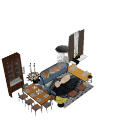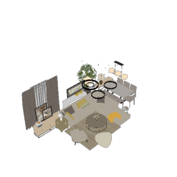 客厅餐厅组合SU模型 (12)