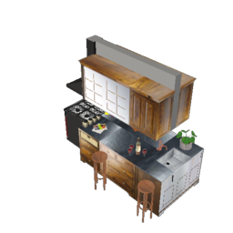 新中式厨房SU模型1